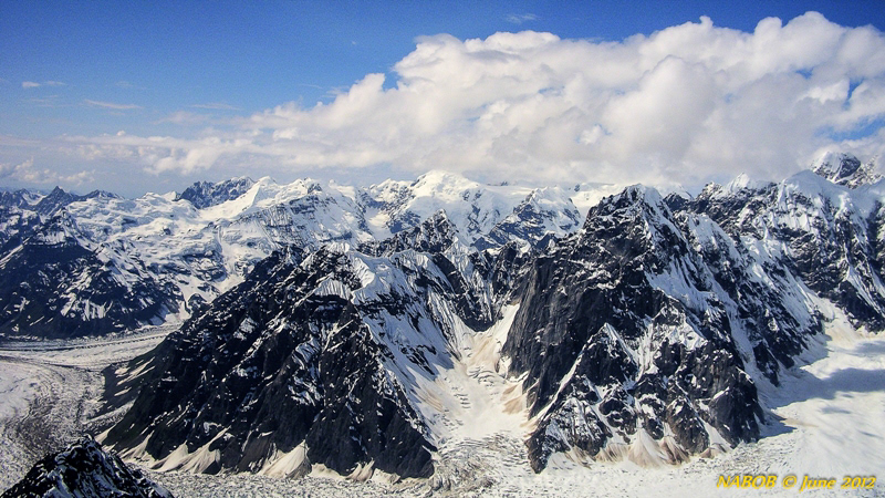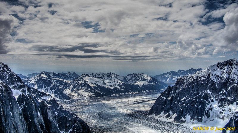 Alaska, USA: One of the widest portions of the "Great Gorge" of Ruth Glacier. The width is about a mile and the ice is about 3800 feet thick.